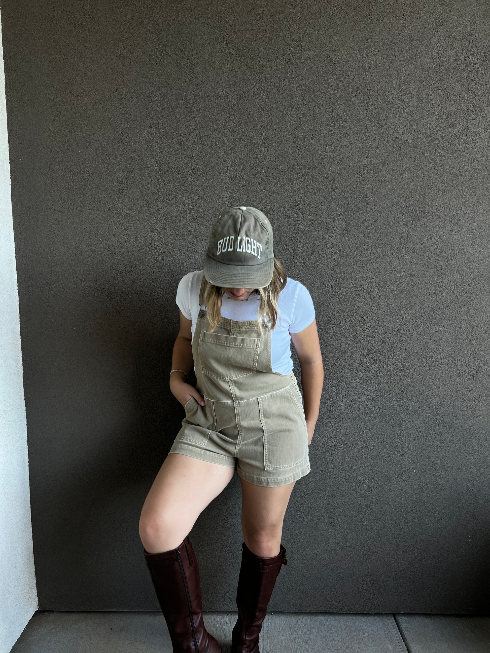 These shortalls are SO comfy, they arent a rigid denim so they are perfect for casual comfy moments. The color is kind of like a muted gold/green/khaki?? Idk how to explain it, but it is fall vibes. Will a long sleeve and boots?? Perfection.