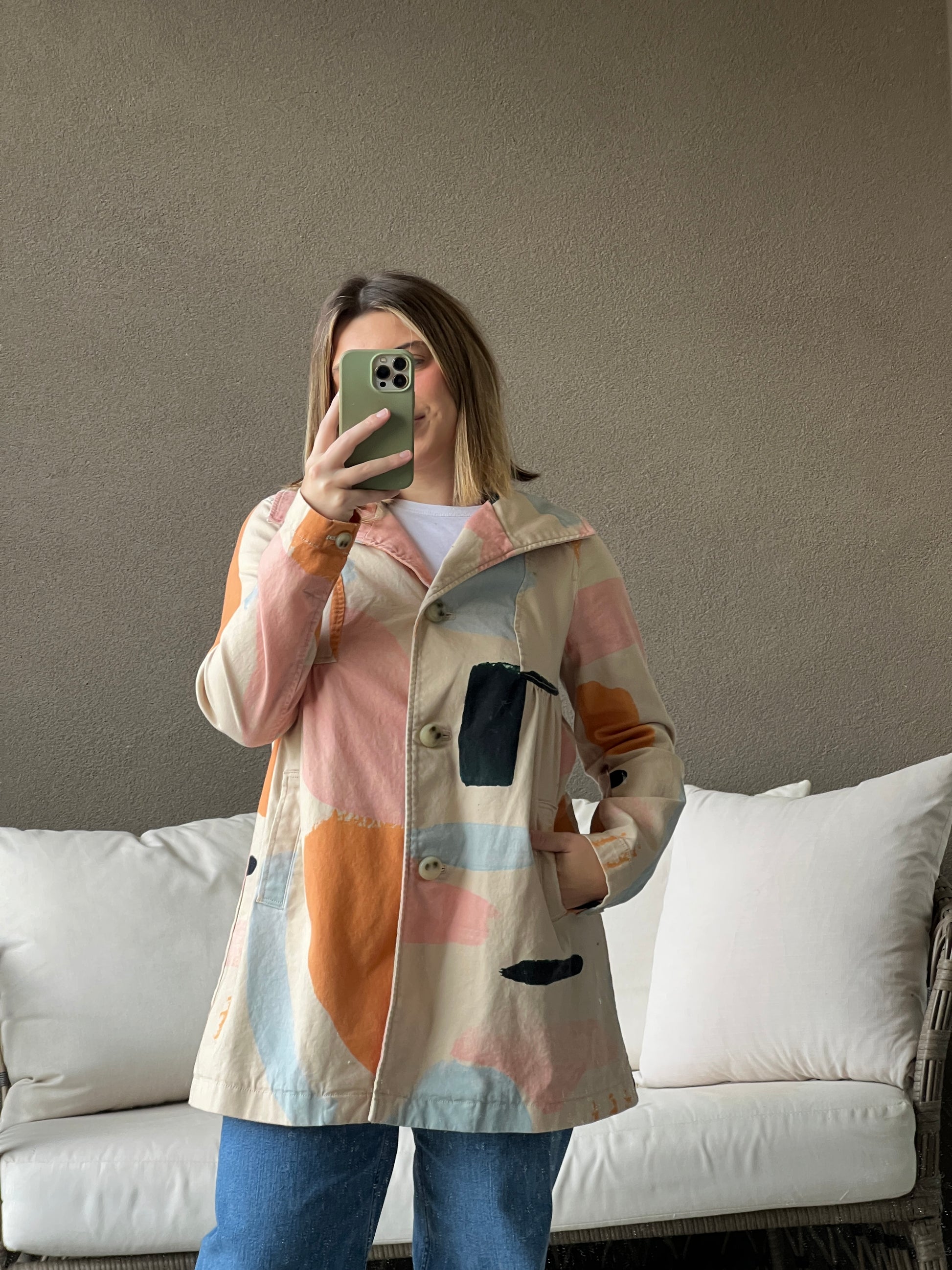 This is such a fun trench style coat from Anthropologie. From a collab with Moglea. Retailed for $178. A functional and fun layer.