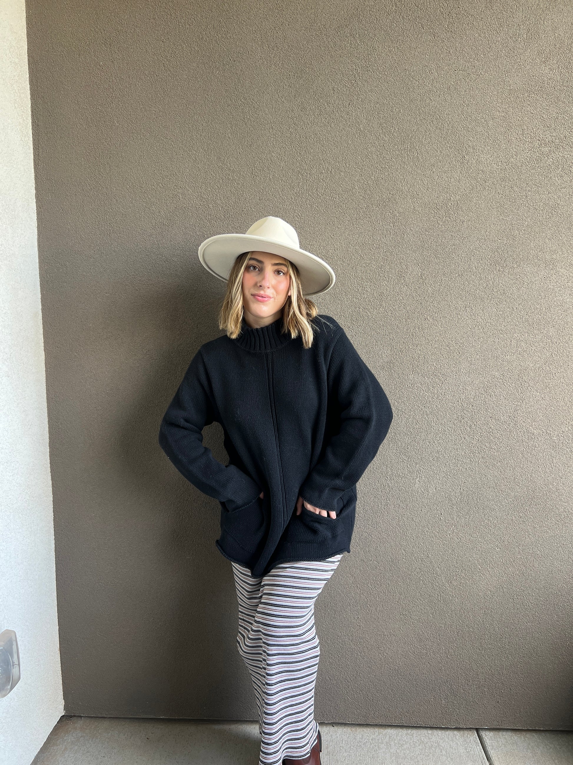 This black sweater has a mockneck and POCKETS. its like the goodness of a sweatshirt but classiness of a sweater.