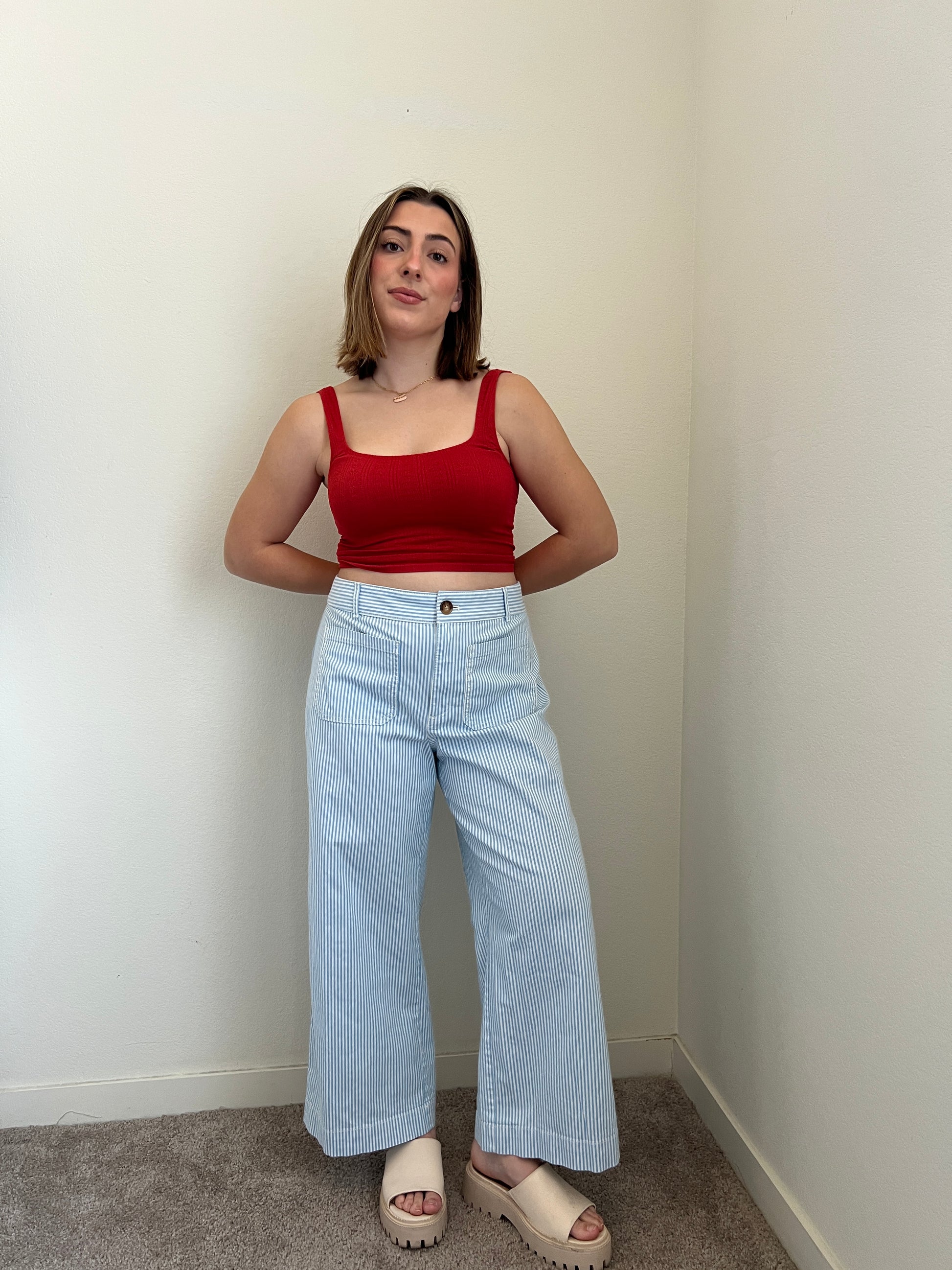 I am so devastated these arent my size. Like you guyssss. These are perfection, these are the Palmer Wide Leg, they retailed for $80 and are such great quality. Slight stretch and so comfy so coastal!!