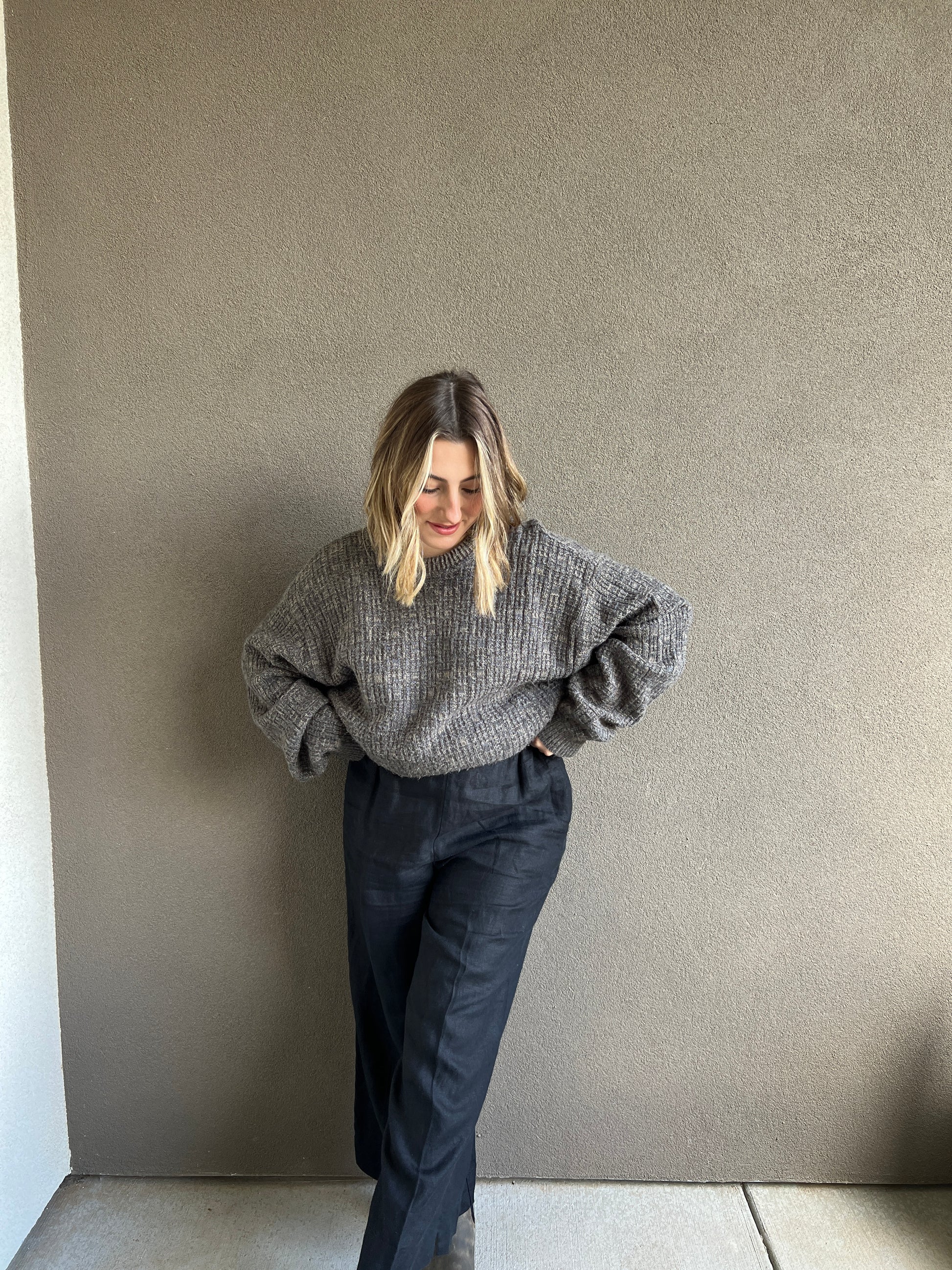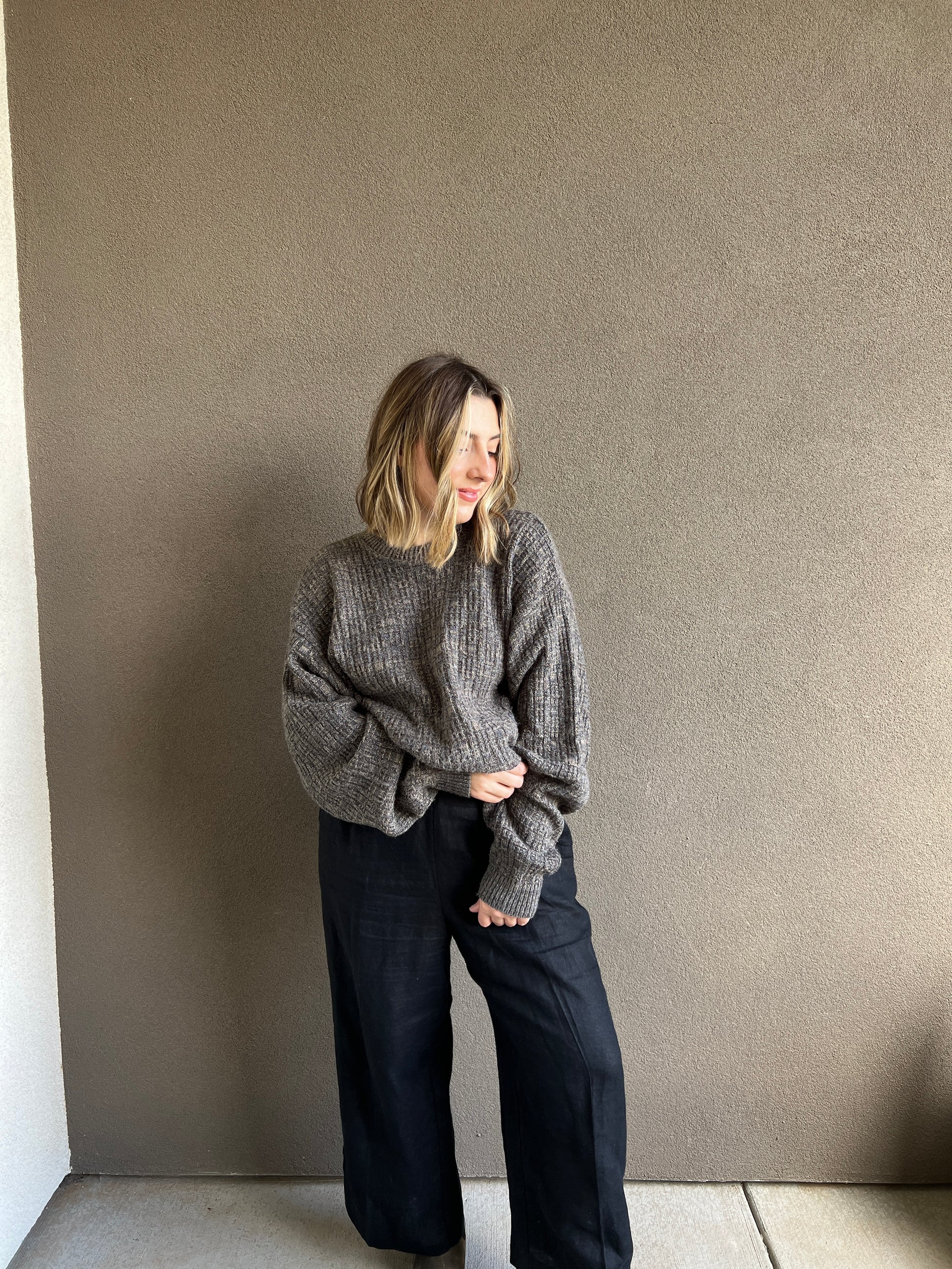 The perfect slouchy grandpa sweater. Its giving the color of tree bark and is the perfect fall staple with its simplicity but perfect texture.