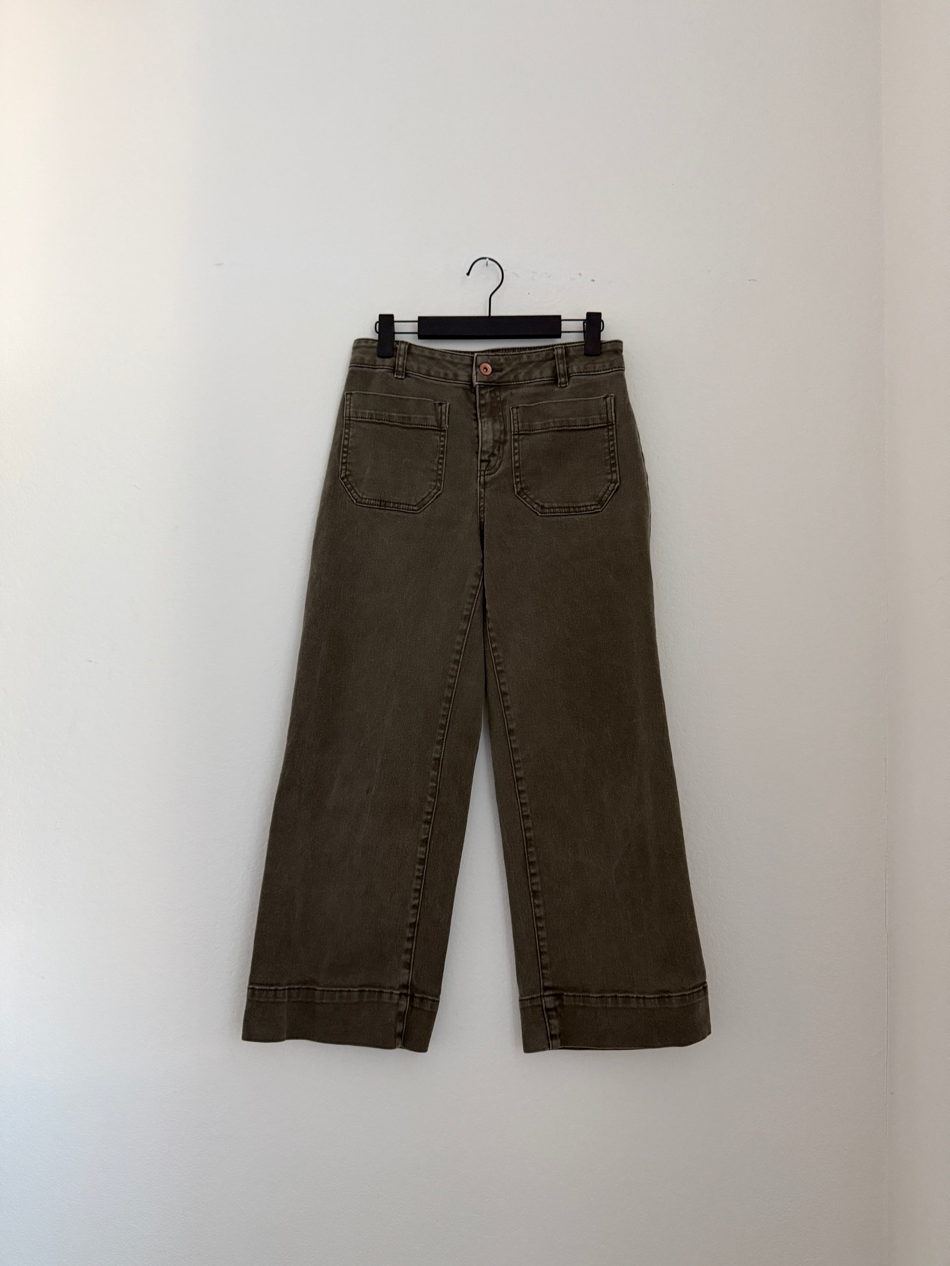 This mossy green is so gorg, this style is currently still sold for $99. This is their 'covert green color' and the style is more of a straighter wide leg jean, slightly stretchy.