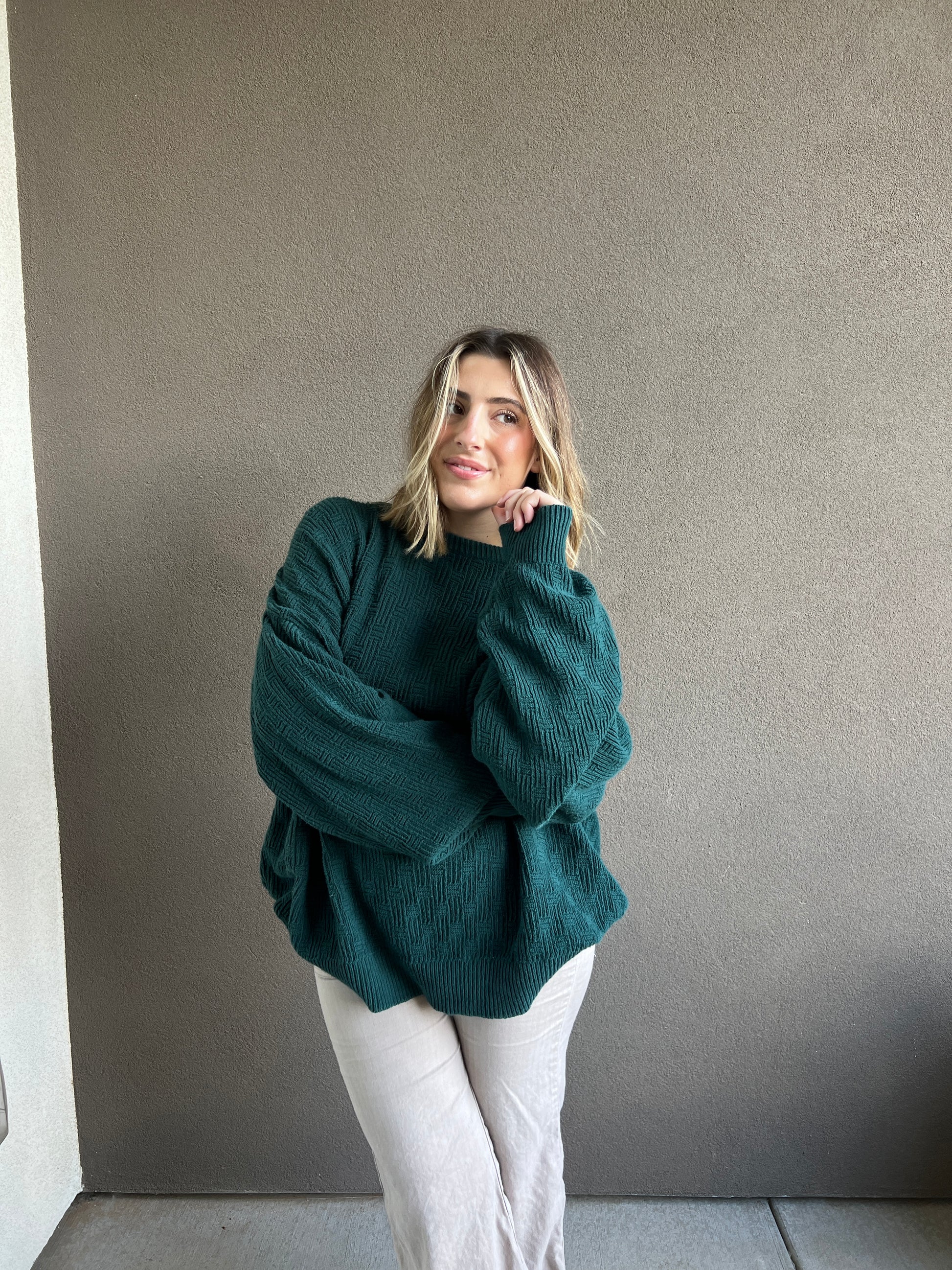 Stunning emerald green colored knit, has a basketweave like texture. Not too heavy and just perfection.