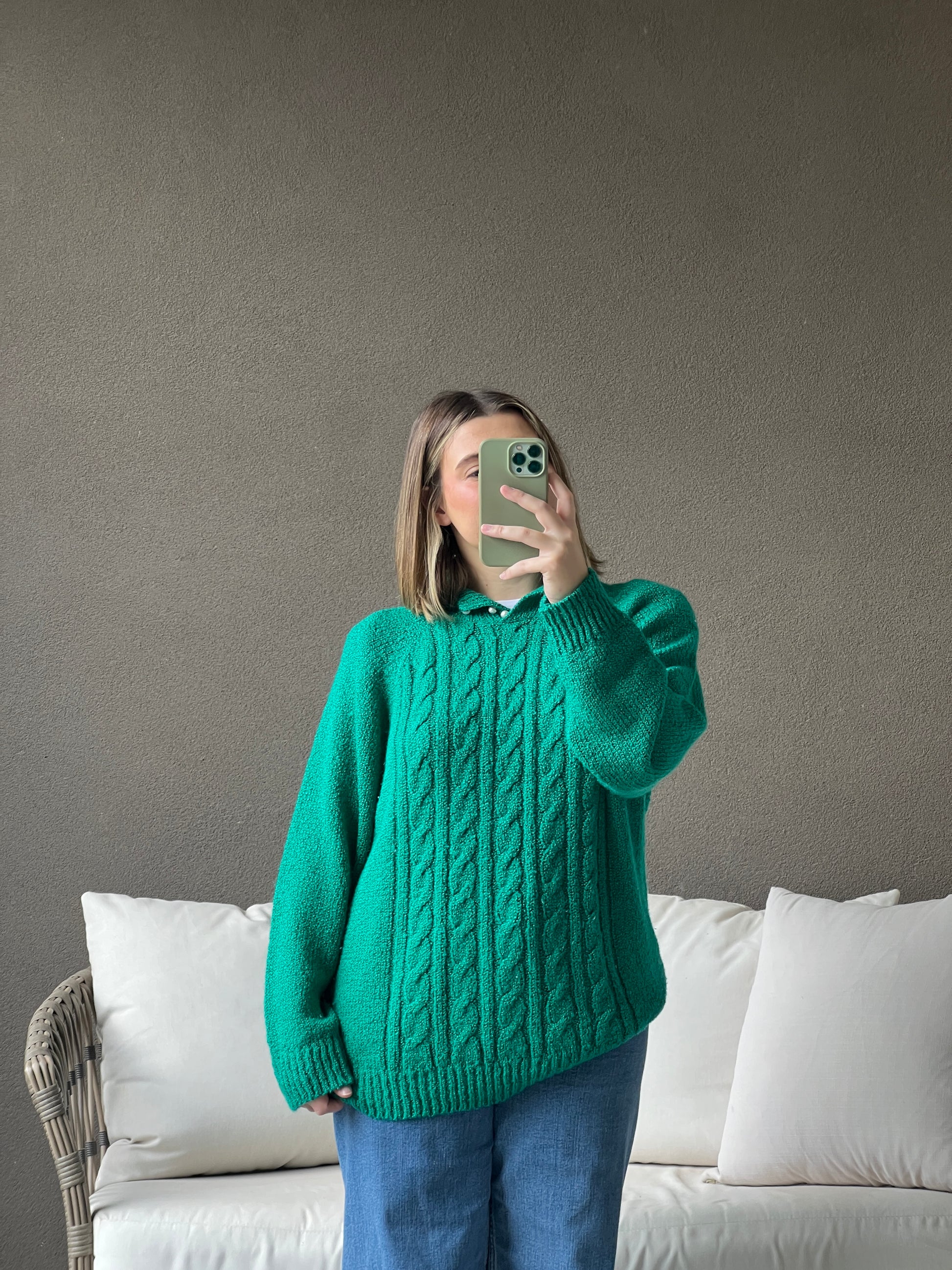 Vintage collared henley style sweater with little pearl looking buttons. Such a fun piece, kind of a teal/green/emerald color!